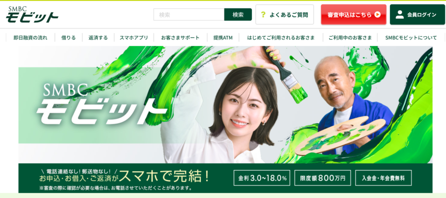 ※1:申込の曜日、時間帯によっては翌日以降の取り扱いとなる場合があります。 SMBCモビットでは「年齢が満20歳以上~74歳以下の定期収入のある方」が申込対象となっています。(※収入が年金のみの方はお申込いただけません) アルバイト、派遣社員、パート、自営業の方も安定した収入がある場合は利用が可能です。(※SMBCモビットの基準を満たす方) SMBCモビットでは2つの方法で借り入れることができます。 振込キャッシング パソコン・スマートフォンの会員専用サービス「Myモビ」または電話で指定の預金口座へ振込手続きを行うことができます。※あらかじめ金融機関口座の登録が必要 提携ATMでの借入方法 全国の銀行、コンビニエンスストアなどに設置されている提携ATMで利用することができます。 提携ATMを利用する場合の手数料は、一部利用者の負担となりますので覚えておきましょう。 SMBCモビットでの借り入れを申し込む際には、運転免許証が必要です。 本人確認書類 有効期限内、または現在有効なものを用意する必要があります。 ※本人確認書類2点の提出が必要となる場合があります。 ※収入証明類(源泉徴収票等)をご提示いただく場合があります。 ※個人事業主の方は「営業状態確認のお願い」の提出が必要になる場合があります。 収入証明書類 下記書類のいずれも「写し」が必要です。 ※2:給与明細の場合、直近の給与明細書2か月分が必要です。 賞与支給がある場合、年間の賞与額が確認できる賞与明細書も必要となります。 個人事業主 個人事業主の場合、「営業状況確認のお願い」という書類の提出が必要になるケースもあります。 個人番号(マイナンバー)が記載されている書類を提出する際には、個人番号(マイナンバー)が見えないように加工して提出をしましょう。 SMBCモビットでは自分のライフスタイルに合った返済方法を選ぶことができます。 ※3:三井住友銀行、三菱UFJ銀行、みずほ銀行、ゆうちょ銀行等 ※詳しくはHPをご確認ください ※4:利用にはインターネットバンキングの口座が必要です。 提携ATMで返済 銀行、コンビニエンスストアなどの提携ATMにて返済を行います。 提携ATM利用時の手数料は利用者負担です。 口座振替で返済 利用者の預金口座から自動引き落としで支払いが可能です。 三井住友銀行、三菱UFJ銀行、みずほ銀行、ゆうちょ銀行等 ※詳しくはHPをご確認ください 口座振替にて返済をする場合は、手数料負担はありません。 銀行振込で返済 利用している金融機関口座から、SMBCモビット指定の預金口座へ振り込み返済を行います。 この方法で返済を行う場合、振込手数料は利用者負担です。 インターネットで返済 会員専用サービス「Myモビ」内のインターネット返済サービスより返済を行います。 インターネット返済サービスを利用する場合、手数料は無料です。 利用にはインターネットバンキングの口座が必要です。 利用限度額を増額希望の場合は、別途審査が必要です。 「増額審査申込」から申込み
